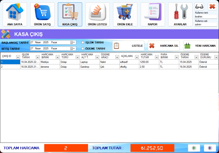 🧾 İşyeri Harcamaları: Masrafları analiz edin ve bütçenizi kontrollü yönetin.